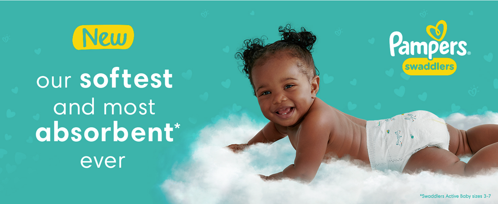 Made for your growing baby, new Pampers Swaddlers is our softest diaper EVER with outstanding absorbency! New ultra-soft absorbent layers soothe and protect your baby’s skin. Specially designed with your baby’s skin in mind, Pampers Swaddlers exclusive BreatheFree Liner wicks wetness away from skin so baby’s skin stays drier and healthier*. Dual Leak-Guard Barriers along the leg cuff help protect where leaks happen most. And, our Pampers Wetness Indicator shows when your baby’s wet. Pampers Swaddlers are free of parabens and latex** and are clinically proven hypoallergenic for protection that’s gentle on your baby’s delicate skin. Plus, our new prints feature hand-drawn animals that illustrate all of the love and sweetness between baby and parent. For trusted protection, trust Pampers, the #1 Pediatrician Recommended Brand. *Vs. leading value brand **Natural rubber Download the Pampers Club App today and earn Pampers Cash!** Redeem your Pampers Cash for exclusive Pampers coupon savings and rewards! *#1 CHOICE OF U.S. HOSPITALS, NURSES AND PARENTS: Hospitals—based on hospital sales data; Nurses—vs. other hospital brands, among those with a preference; Parents—based on retail sales. *0% PARABENS AND LATEX: Latex—natural rubber. **Only redeemable via Pampers Club. No cash value.