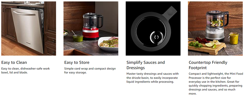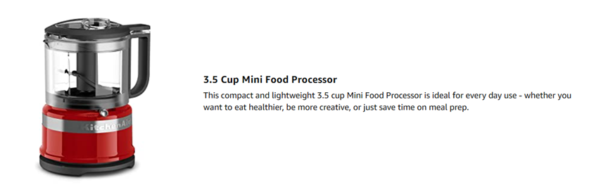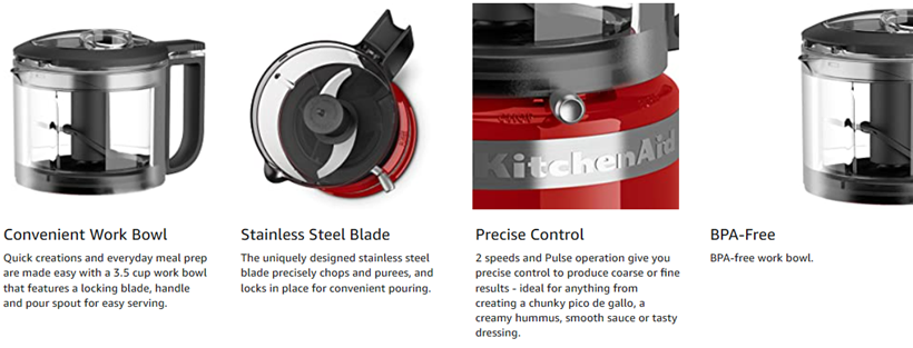 You will get exceptional performance with this KitchenAid 3.5 Cup mini food processor. Two speeds and pulse operation give you precise control to produce coarse or fine results – ideal for anything from creating a chunky pico de gallo, a creamy hummus or a smooth sauce.