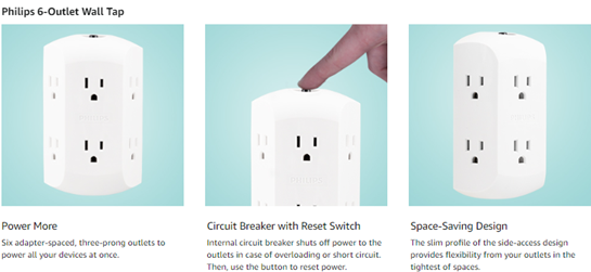 Included Components | Philips 6 Outlet Wall Charger, Resettable Circuit Breaker |