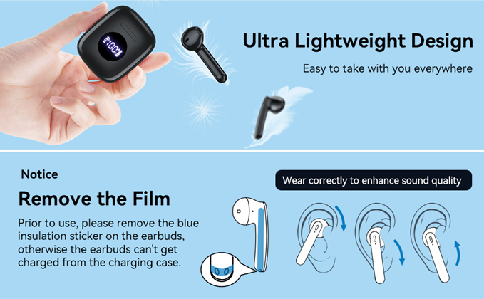 * Easy to use! Just open the charging case, our N7 wireless earphones will automatically connect with your device right away. (After 1st successful connection)