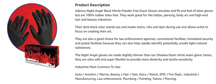 Adenna Night Angel 4 mil Nitrile Powder Free Exam Gloves