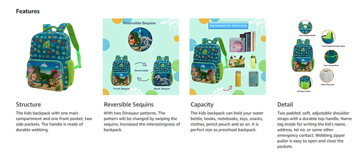 ⭐【Magic Sequins Kids Backpack】: Reversible sparkly sequins with two different dinosaur patterns on front pocket by swiping the sequins. It is cute and attractive for little boys in kindergarten or elementary preschool ages from 4-10 years old.